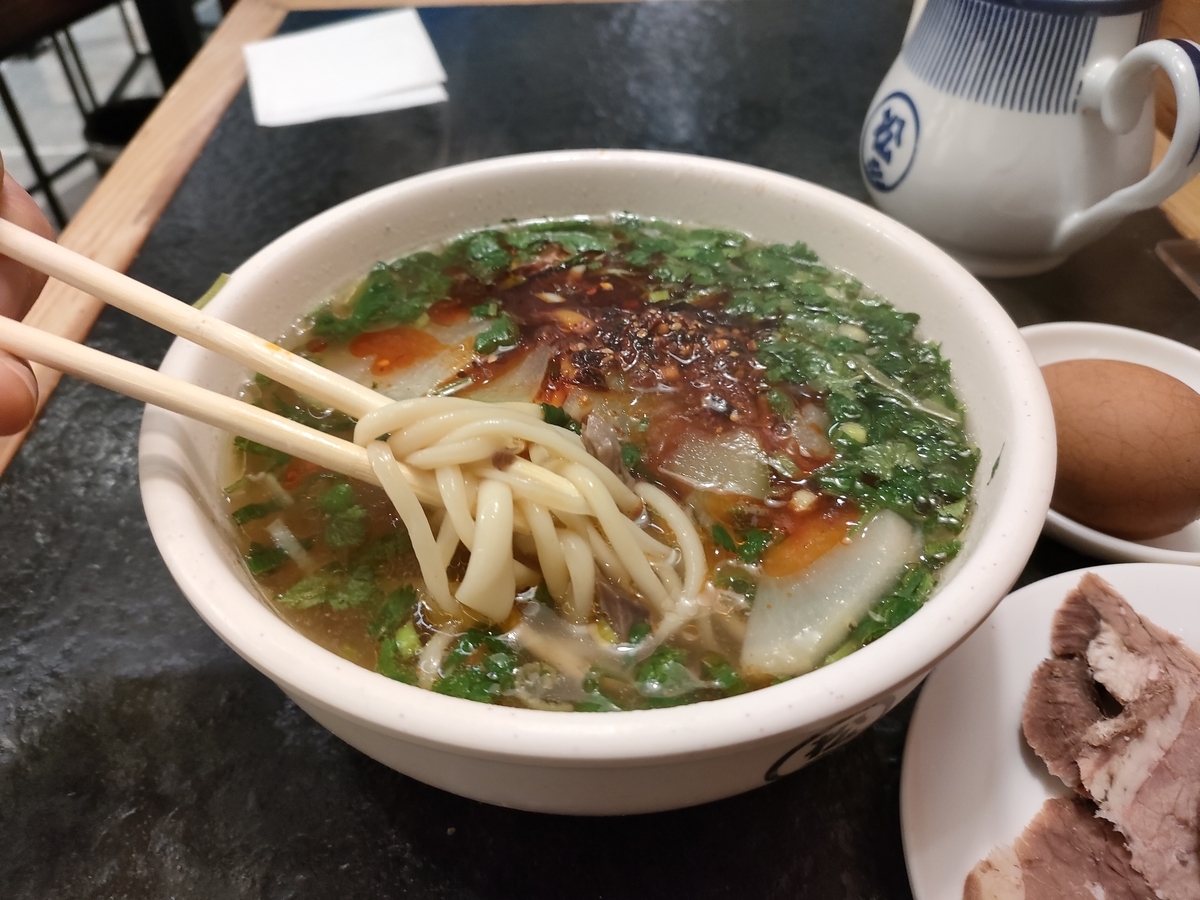 パクチー、ラー油、スープのスパイスと、様々な香りが渾然一体となっててほんとに美味しいです。 日本のラーメンが旨味重視だとすると、こちらは香り重視と言えるかもしれません。 そういう意味では、昨日のお店は葉ニンニクが強すぎた感があって、個人的には今日のお店のほうが好みかな。 朝から美味しいものを食べて身も心も暖まりました。